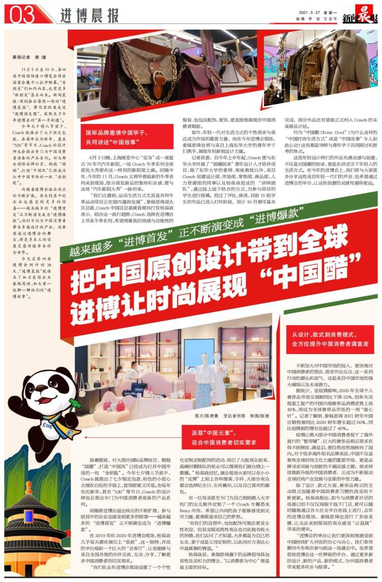新闻晨报推出《进博老友记》系列视频第三集,专访Coach、kate spade、Stuart Weitzman三大品牌的代理商——美国企业Tapestry(泰佩思琦)亚太区总裁杨葆焱。