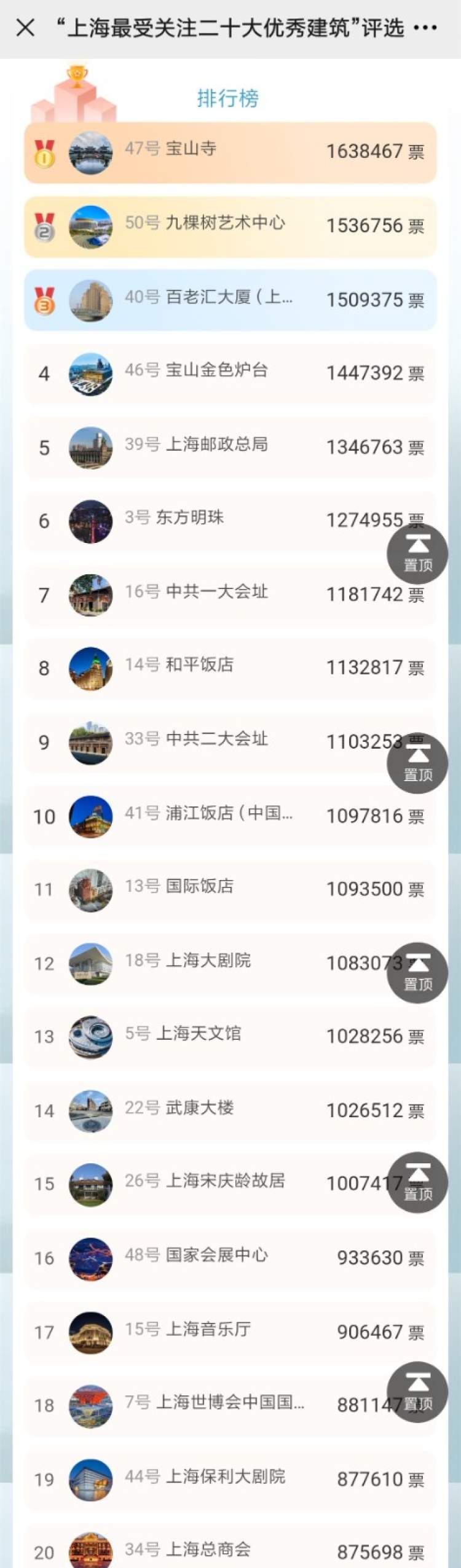 投票排名前20位的建筑