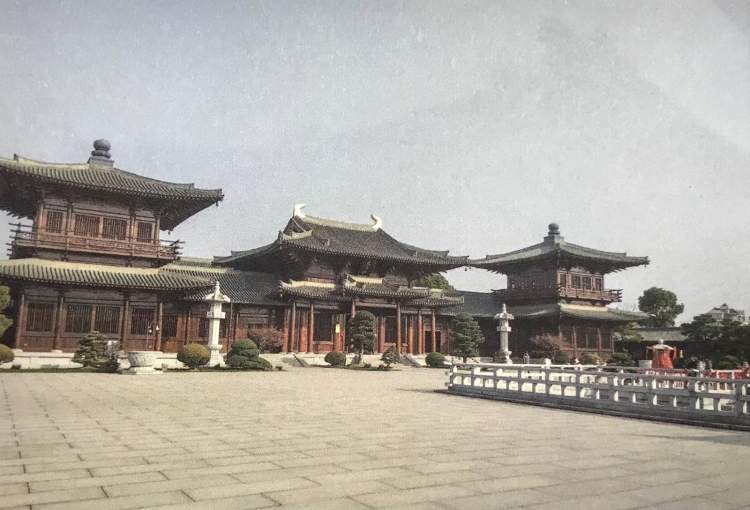 不一会儿,眼前出现一座完全有别于旧庙的庙!我不忍说“一座新庙”,因为“新”字与庙不搭调,庙总是越老越有历史越好的。关键是,我们踏访的这座新造的庙,看着似唐朝建筑,给人的感觉,不是簇新、不是金碧辉煌,而是古朴、而是宁静致远。