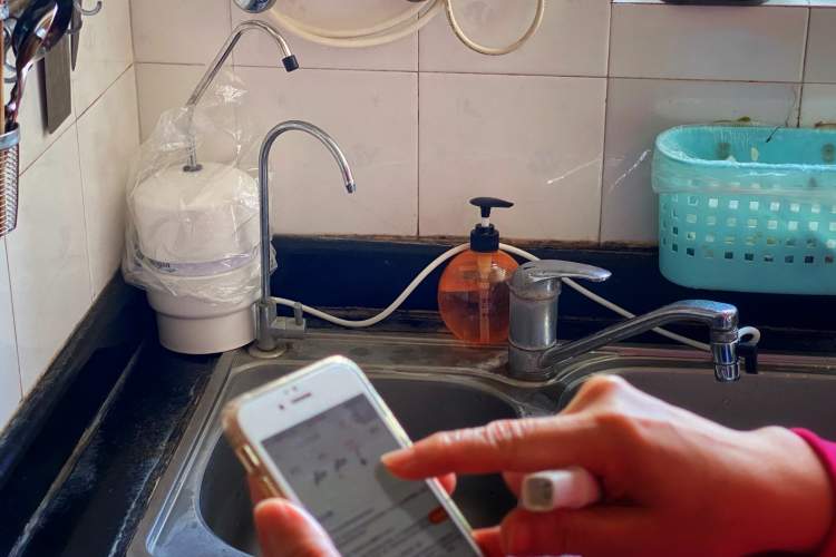 为了验证张女士碰到的情况,记者来到张女士家中,现场对水质进行一次测试。