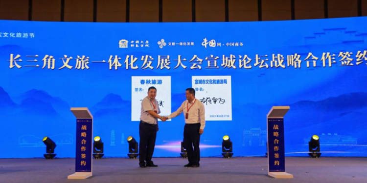在昨天下午,旅游节还举办了长三角文旅一体化发展大会宣城论坛。论坛依托沪苏浙皖四省市高校成立了长三角文旅一体化发展专家团,并为“专家智库”揭牌;发布了长三角文旅一体化发展《宣城宣言》;推荐了首批“长三角文旅一体化发展项目”;与春秋旅游集团签订了战略合作协议,春秋旅游“文房四宝研学旅游”首发。同时,设立了“中国文房四宝国际传播基地”,建立对外传播常设机制,讲好宣城文化旅游故事。