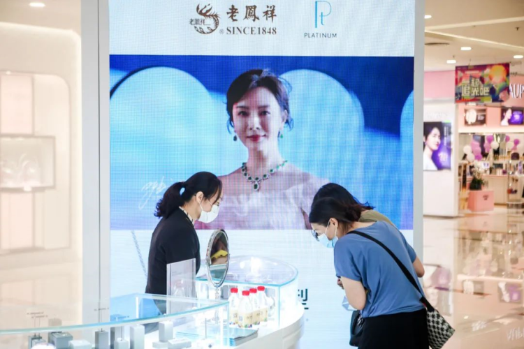 今年老凤祥先后选择了在莘庄龙之梦和吴中路万象城开展铂金推广活动,使越来越多的消费者、特别是年轻的消费者了解,老凤祥不仅有代表“国潮、国韵、国风”的国家级非遗技艺以及藏宝金、凤祥喜事、绣风华等经典传承产品,也有引领潮流的轻、晶、靓时尚产品。