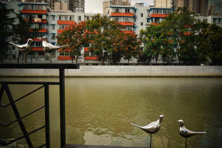 谈笑间,两只水鸟“咻”得一下飞了过去,老秦赶紧按下快门,“有鸟,说明这里的生态还是不错!”对于苏州河的初印象,老秦觉得满意,但他还提出了更高的期待:“水太脏了,颜色不理想,透明度也不行,好在没有气味,我老家沈阳的景观河就比这儿要好一些,苏州河的改造力度还应更大一些!”