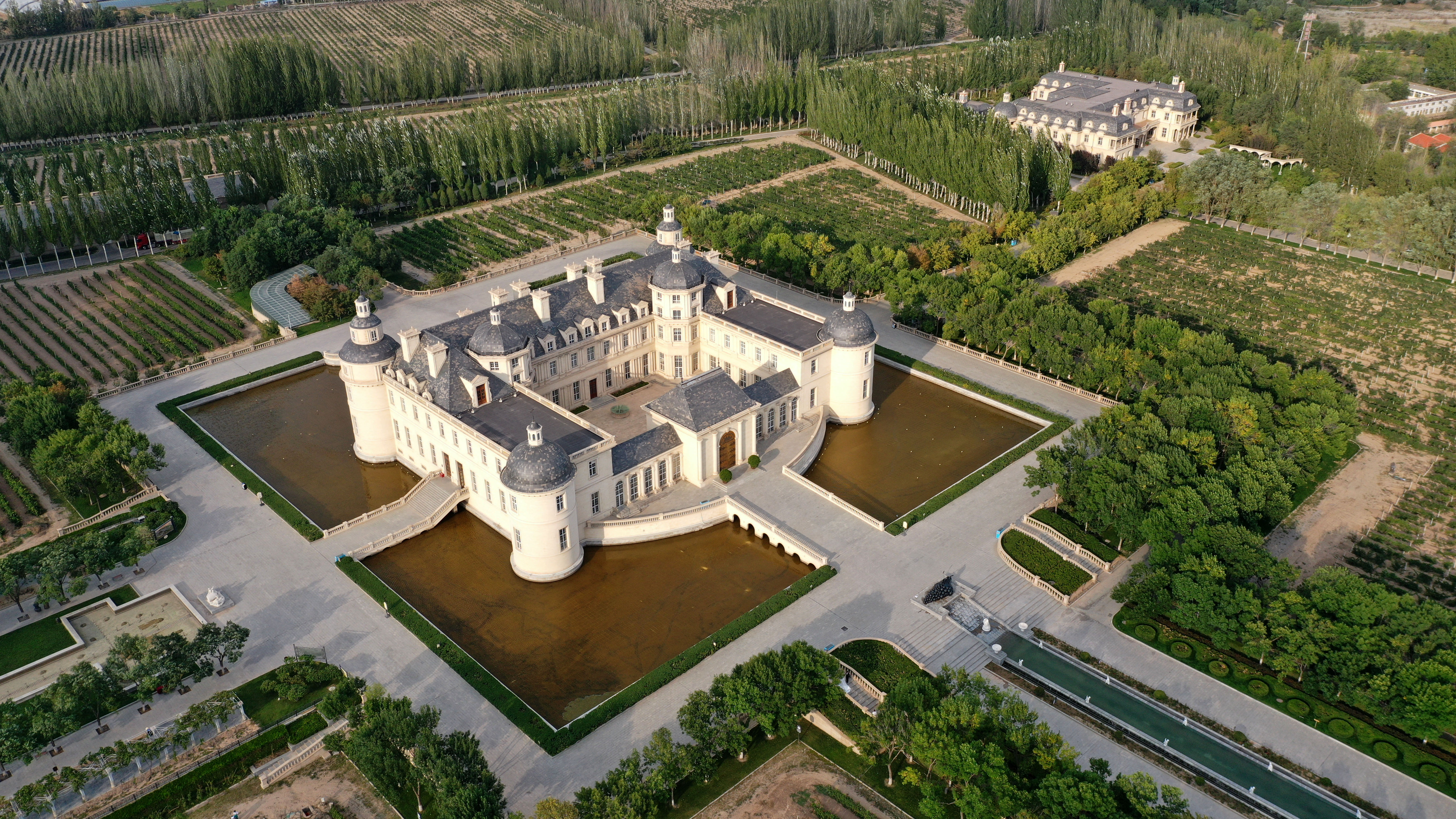 ↑位于宁夏贺兰山东麓闽宁镇的贺兰红酒庄。