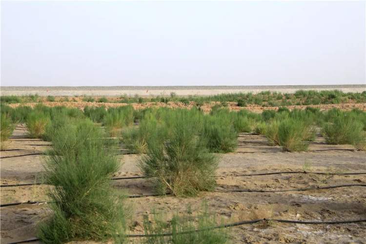 和若铁路地处有着“死亡之海”之称的世界第二大流动性沙漠塔克拉玛干沙漠南缘,和若铁路有一半受到风沙的影响。为防止沙害对施工的影响,该条铁路在建设初期就提出“治沙先行”的建设理念,风沙防护工程与铁路建设同步进行,这在全国铁路建设中也尚属首次。目前,铁路沿线的一道道绿色长廊已成为防风治沙的天然屏障。建设者在沿线共修建草方格近5000万平方米,种植梭梭树、红柳、沙棘等灌木和乔木近1300万株。