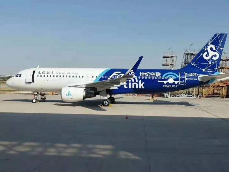 第二架彩绘机是春秋航空与世纪空联合作的“世纪空联号”,同样以深蓝色调为主,于2019年10月正式投入飞行。