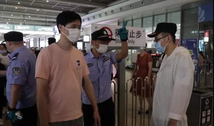 浦东和虹桥机场派员对出机场的乘客进行健康码查验。查验时,工作人员发现一名持“黄码”的人员,现场专业人员迅速对其进行流行病学调查和体温检测,并要求其在随身码系统中录入信息,由社区对其加强健康管理。