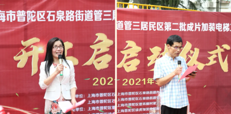 街道办事处主任何家骥发表致辞并宣布管弄路121弄9号楼加梯项目正式开工