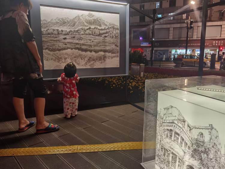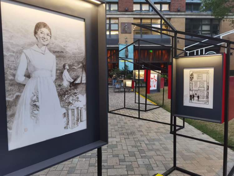 十一期间,“坚劲”——庆祝中国共产党成立100周年暨“百年愚园路”长三角新钢笔画作品展在这条马路上举行。