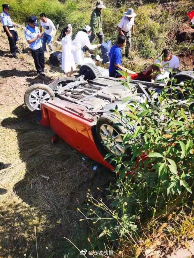 两人搭乘的红色轿车整辆翻覆,车顶压在最下面,看起来冲击力不小,因此让不少网友担心直呼“一定要平平安安”、“幸好现在没有生命危险”、“在云南还是不要开山路比较好啊”、“现场照真的太可怕了,大家也要注意安全”……
