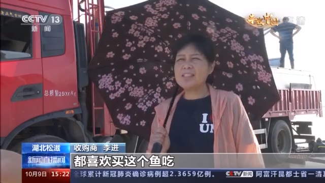 某水产公司负责人 唐勇:今天可能要起七八万斤,目前白鲢鱼(市场价)是三块多钱一斤,胖头鱼是八块钱一斤。(全部)大概能卖一百多万块钱。今年的(收成)还是可以,心情很高兴。