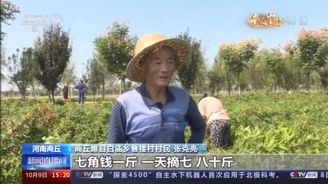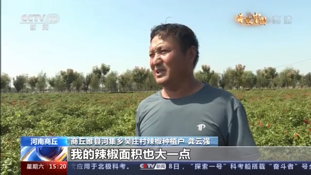 商丘睢县河集乡吴庄村辣椒种植户 龚云强:根据今年采摘辣椒的情况,我的辣椒面积也大一点,那几天在高峰期的时候,一天一般情况下都是一百多个人,最多的一次一中午摘了八千多斤,一般平常就是五六千斤。