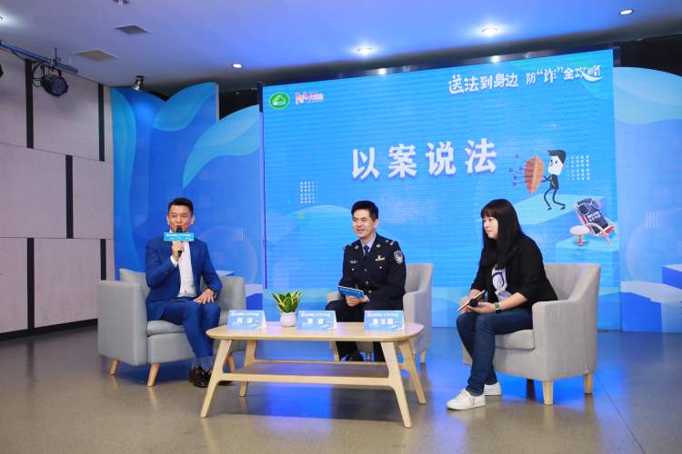 上海广播电视台新闻主播、上海市治安防范宣传大使陶淳主持,上海市公安局治安总队警官、被司法部授予“普法为民好榜样”荣誉称号的黄奕,上海申浩律师事务所高级合伙人、市计生协法律服务公益律师张玉霞共同分享防诈攻略,以案说法在线支招。