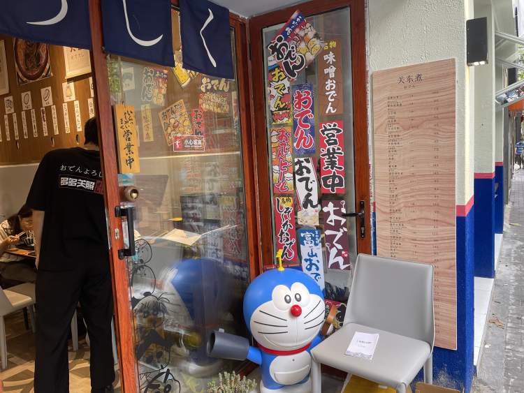 “多多关照”是一家专门做关东煮的日料店,店铺面积较小,日式的装修风格和充斥着日漫元素的装饰,显得十分温馨有趣。周到君去的时候,屏幕上正播放着《名侦探柯南》,专属于日料店的氛围感直接拉满。