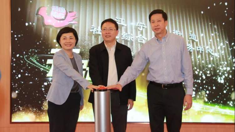 静安区委副书记、区长王华,区委常委傅俊,江宁路街道党工委书记沈虹为江宁路街道社区综合为老服务中心揭牌