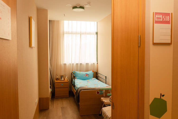 走进淮安路771号5楼,映入眼帘的是窗明几净的房间、整洁温馨的被褥、适老化设施完备的卫生间,房间门口,房间号上各写着不同的花语,下方还有不同花的图案来区分房间,好似密码——洋甘菊:回溯时光,我一直在等你;勿忘我:忘了全世界,记得我爱你……原来,这幢楼是静安区江宁路街道全新落成的为老服务中心,而5楼是中心长者照护之家所在处,其中这个尤其充满温情的区域则是给患有认知症的老人居住的,目前共有12个床位,房间门口用花朵图案来区分,也是延缓认知症老人病程的一种探索。