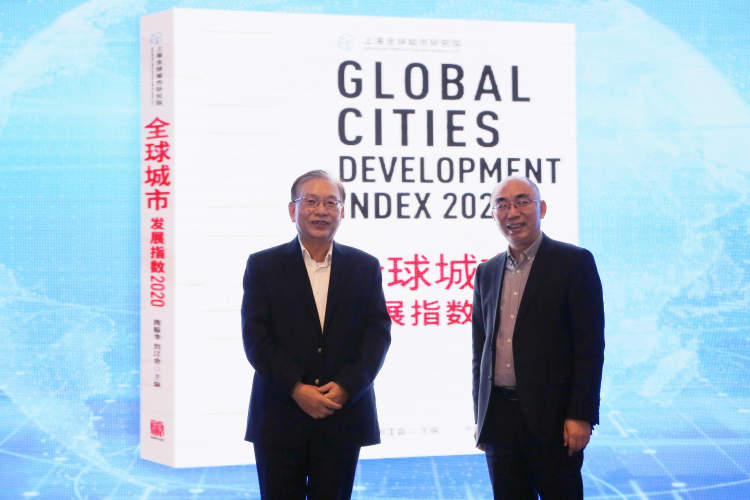 上海全球城市研究院院长周振华研究员和上海世纪出版集团党委副书记、总裁阚宁辉共同发布了《全球城市发展指数2020》