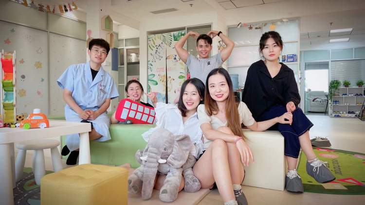 于是,杜心童和她社团的成员们便在病房里开启了语音矫正夏令营。刚开始的时候,他们就凭着自己播音、语言学的专业知识,因材施教地与小朋友在玩的过程中,鼓励他们要开口说话,并且告诉他们应该如何发音。