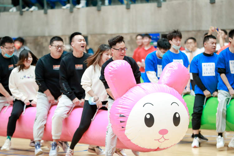在第二个项目“凝心聚力”中,来自五角场凯悦酒店的选手率先完成了堆起七个木块的好成绩。“每个项目开始前,我们都会现场商量制定策略,在‘凝心聚力’项目开始前,我们根据道具摆放方向调整了所有吊环口的朝向,这样放完一个马上就可以拉下一个,速度会快很多。”五角场凯悦酒店团队的任宇翔认为这是他们团队发挥得好的小技巧。