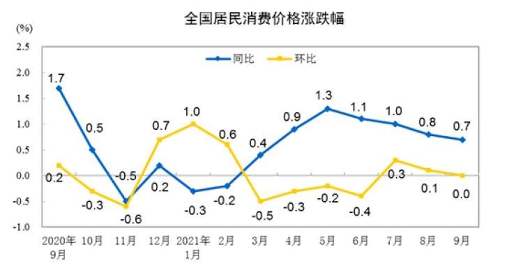 今年第三季度我国CPI同比增速降到“1”以下,消费价格整体相对平稳。核心CPI同比增速在2021年1月触底后反弹,第三季度重新回到“1”以上。7、8、9月扣除食品和能源的核心CPI分别为1.3%、1.2%、1.2%,平均同比增速为1.2%,明显高于2021年上半年0.4%的平均增速。由于当前猪肉价格已接近2013年以来最低价,对养猪积极性产生一定负面影响,课题组预计2021年第四季度猪肉价格将基本稳定,2022年同比增速将显著上升。