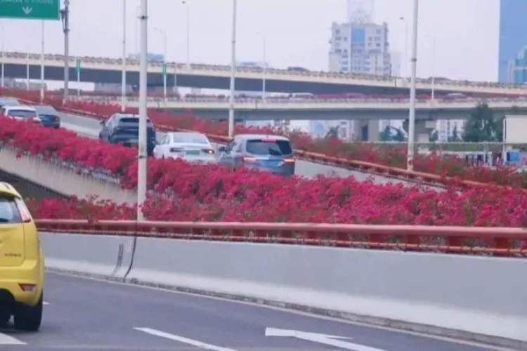 部分高架盛开三角梅,外围区域同样美