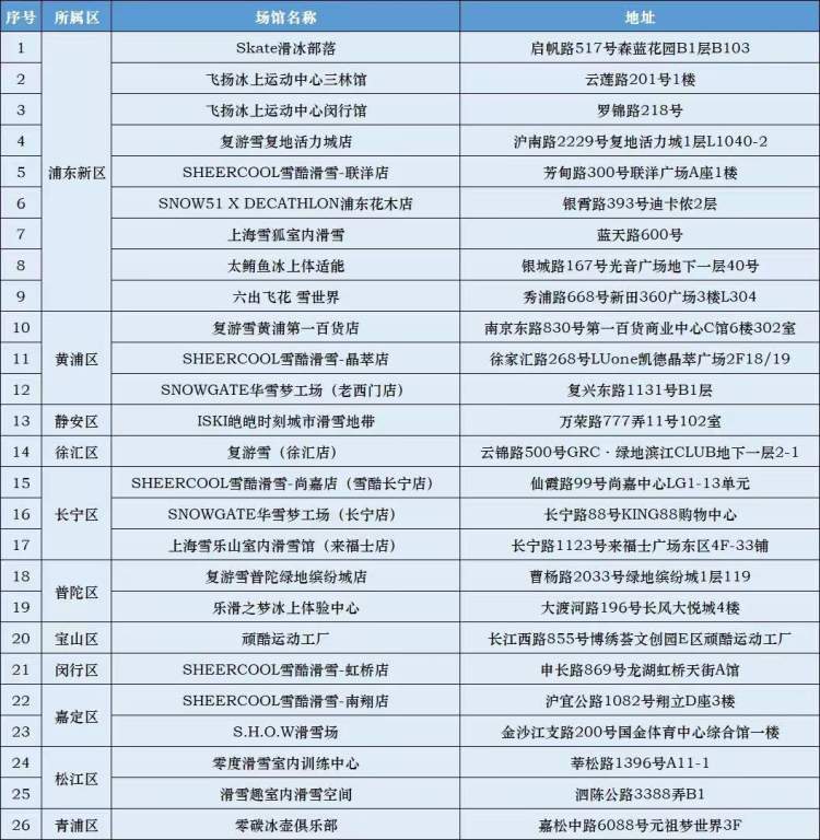 目前第一批上海体育冰雪专项券定点场馆共有26家,后续将会有更多冰雪场馆上线。