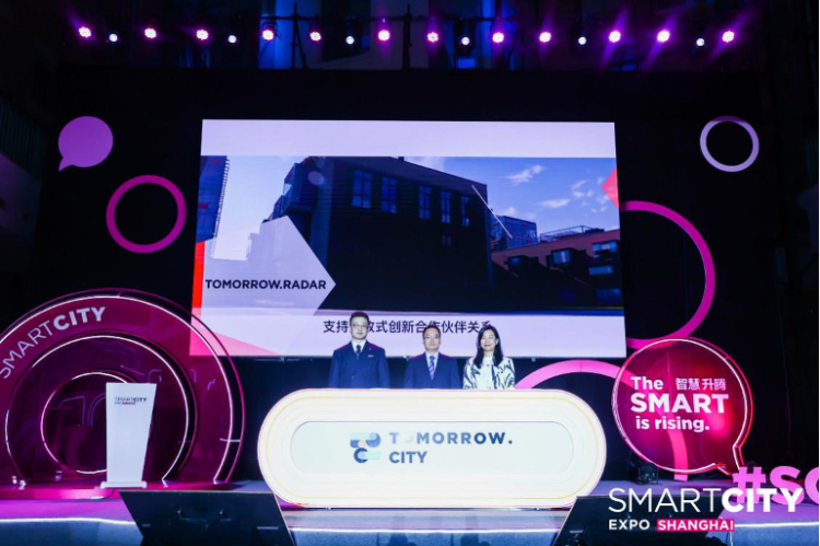 15日晚活动闭幕现场,虹口区政府领导、中国新天地商业总监及瑞虹天地项目总经理陈纯、全球智慧城市大会大中华区CEO毛辉东共同发布“明日城市引擎”项目,未来将通过三方的合作伙伴关系构建虹口区智慧城市产业高地。同时基于三方的政策、服务及资源融合,将导入全球服务于智慧城市领域产业链上下游的企业入驻虹口,助力虹口区数字化转型及上海智慧城市的构建。