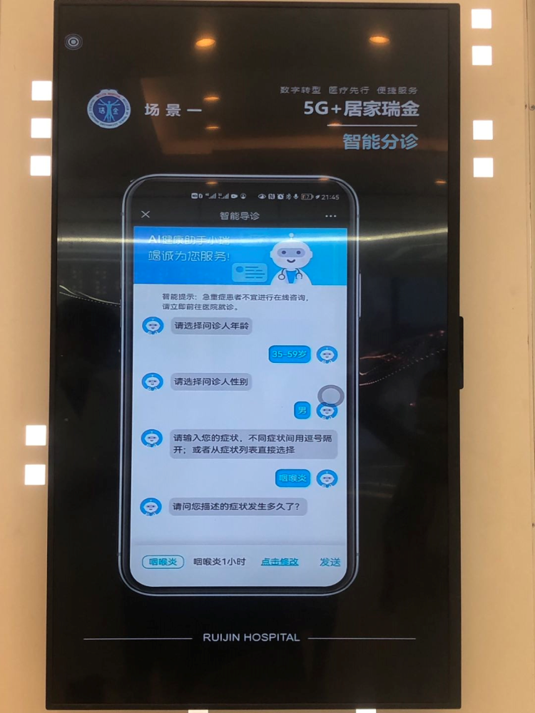 瑞金医院在全市率先对数字化医疗场景进行先行先试,目前又七大应用场景基础上推出“智能分诊预约”“智能全程陪诊”等新七大场景(2.0版本),预计下个月中下旬将在瑞金医院全面推开。与此同时,3.0版本也已在开发推进中。