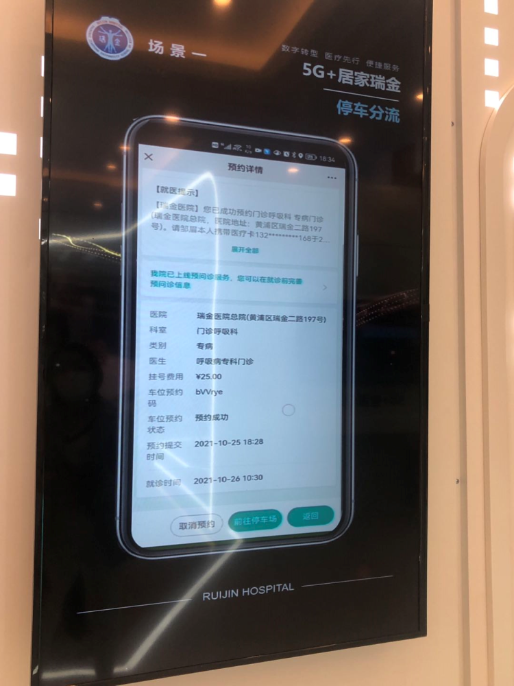 在病人在平台上预约医生以后随即会获得一个二维码。凭这个二维码,病人就可以优先预约医院停车位。目前,瑞金医院也在和交通部门一起拓展医院的停车位,希望联动周边商场等一起加入。同时,在平台上给病人和家属推荐行车路线,实现停车快速分流。