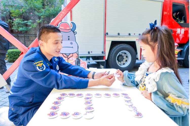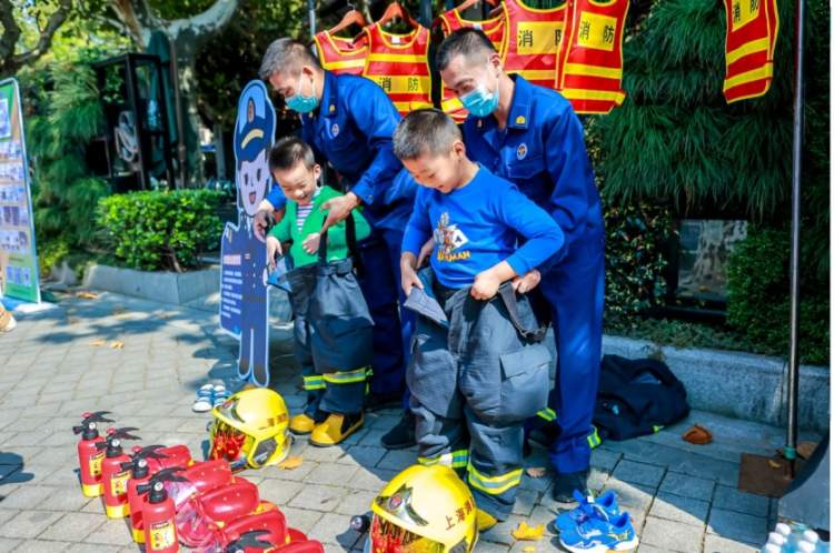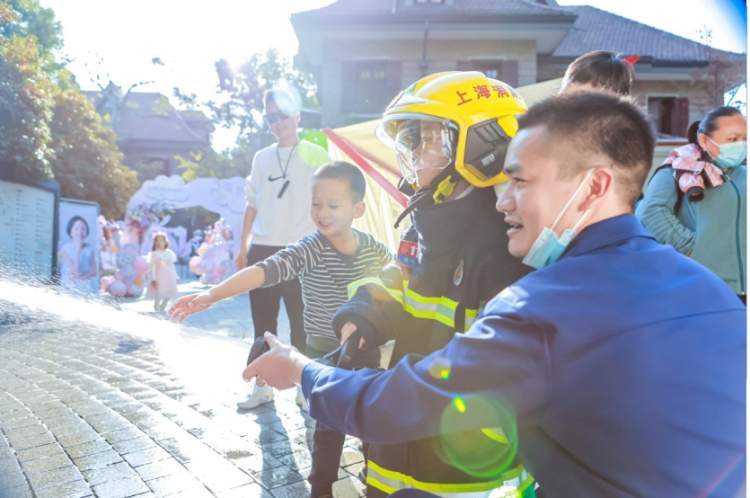 10月30日,黄浦区消防救援支队的“蓝朋友”们带着消防车、灭火装备、消防知识来到思南公馆,为小朋友们穿上装备,教他们端起水枪,让小朋友体验了一把当“小小消防员”的乐趣,让他们在欢声笑语中沉浸式学习消防安全知识。