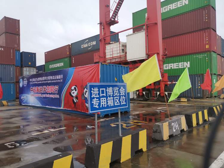 洋山深水港一、二、三期码头都设有一个“进口博览会专用箱区位”,这块区位具备靠近港区出口、车流量小、消防站和最大水源点距离短等优势,方便安保人员以最快速度对突发事件进行应急处置。