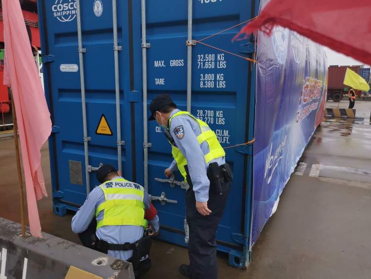 同时,警方还加强了对专用箱区入场计划,做到对进出箱区人员、车辆的全面管控:“每当有货物进出,工作人员都需要跟警方报备。”专用箱区距离港区出口路程很短,并有明显的引导标志,离港物资可以快速出港。