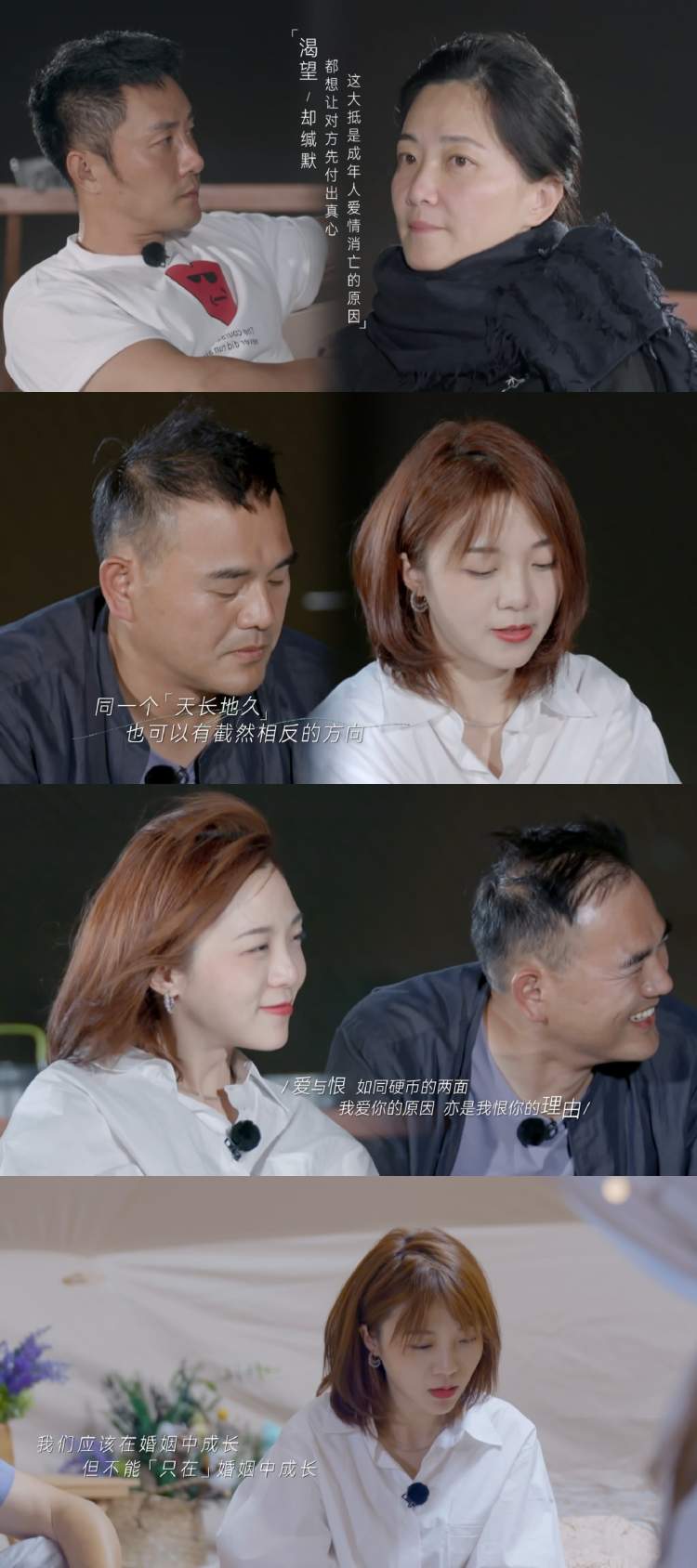 可贵的是,节目并没有刻意贩卖焦虑,也没有重复各自的痛点,更没有把亲密关系中的冲突和破裂解释为一方为主的过错。