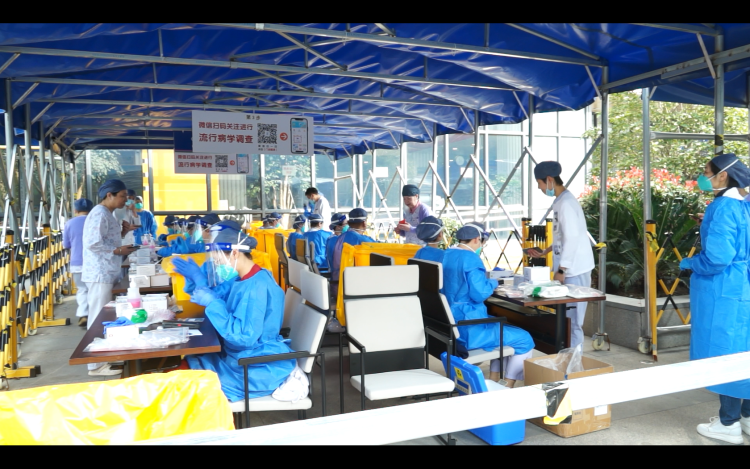 昨天上午9点半前,临时核酸检测区域迅速完成搭建与准备,至11:30,第一轮全员核酸检测高效完成,患儿、家属、员工、医学生、外来服务人群等3000余位人员接受了核酸检测。