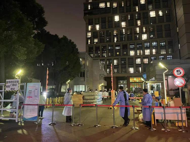 与此同时,很多力量也在默默支持着医院……塘桥派出所及时出动警力,维护周边秩序;仁济医院浦西分院慷慨伸出援手,协助共同完成大批样本核酸检测;餐饮、被服等供应企业也纷纷尽最大的努力向医院提供物资保障……
