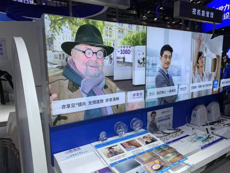记者今天在医疗器械及医药保健展区的依视路展台就找到了这样一款特殊的镜片,与众不同的是,镜片的外圈基本是磨砂的材质,厚薄与普通镜片基本一致,而镜片中央则是一小块明显加厚的圆形镜片。现场工作人员告诉记者,这样的设计也是希望在满足使用者的刚性需求之余,也尽可能地减轻佩戴负担。