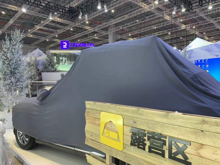 此外,记者还在消费品展区发现了不少即将成为热门打卡点的展台。例如今年的体育用品及赛事专区调整至了5.2号馆,其中“冬奥元素”夺人眼球。迪卡侬的展台还原了欧洲勃朗峰运动胜地的景象,在雪山风光之下,观众可以亲身体验户外大自然的露营、滑雪。