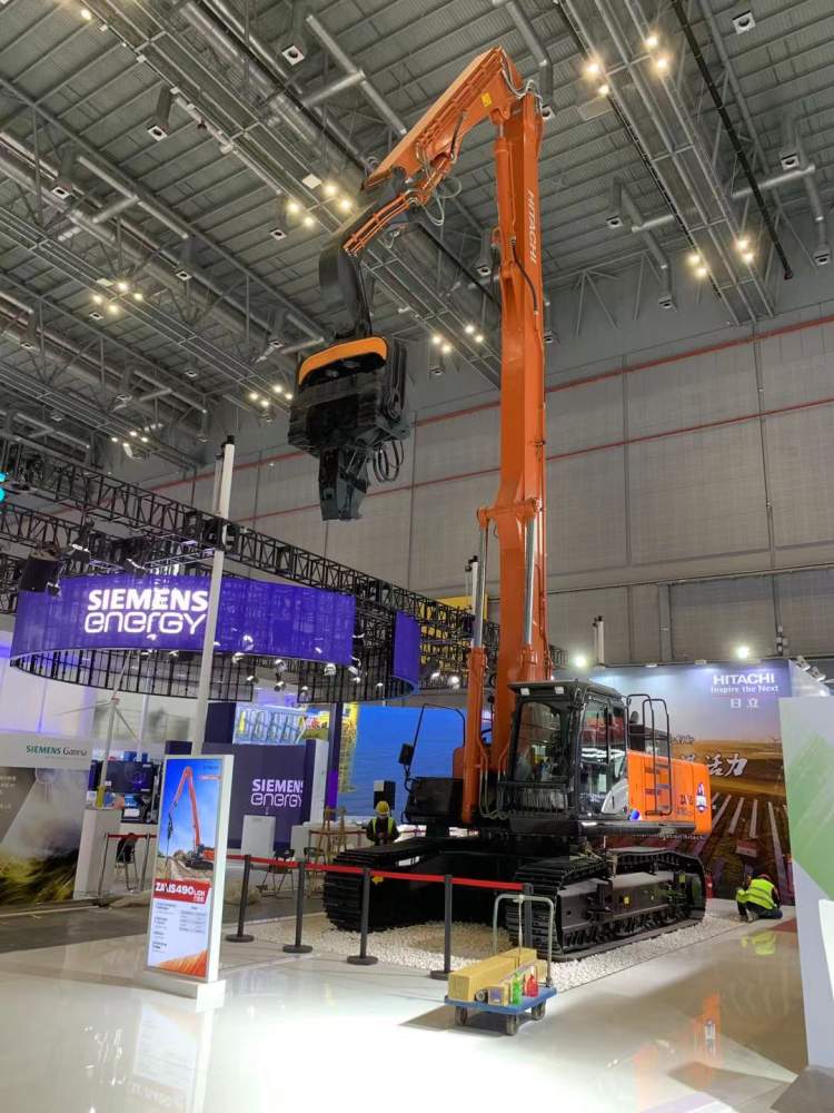 据介绍,这台打桩机的动臂长度为12米、头杆长5.8米、作业高度达18米,而其最大举伸高度可达21.4米。由于3号馆是目前“四叶草”各馆中唯一一座独立、未加层的展馆,在此处亮相的最高展品也基本可以被视作今年进博现场的“全场最高”。