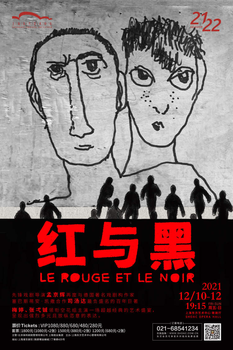 12月10-12日,孟京辉将率梅婷、张弌铖以及“空花组”的代表成员一起亮相上海东方艺术中心,博弈一场难分胜负的纠葛爱情。这位中国先锋戏剧导演将带着对这部时代巨著的敬畏和热爱,再度与德国著名戏剧构作塞巴斯蒂安·凯撒合作,用孟氏美学解构全新《红与黑》。沪上观众将第一时间一睹这部巨制的真容,戏剧的张力喷薄而出,带领观众重回那个遥远的红黑色的梦幻。一场历史与生命的博弈、个人理想和矛盾的追逐即将上演。