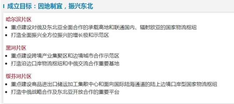 目前东北亚区域经济一体化合作逐渐受到相关国家青睐。作为中国面向东北亚地区和俄罗斯开放合作的前沿阵地,中国(黑龙江)自由贸易试验区承担着支撑“中蒙俄经济走廊”的重要作用;同时,在东北进一步深化改革开放、强化政策保障、优化营商环境的新形势,建设黑龙江自贸试验区成为东北振兴的抓手。