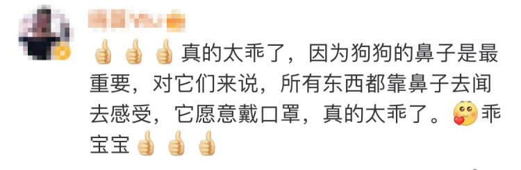 不管怎样,围观网友都被狗狗的乖巧可爱“震惊”了,还有人po出自家毛孩子戴口罩的图片↓