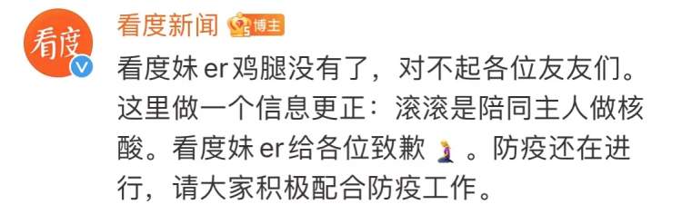 据看度新闻官方微博 11月2日当天,上述小区内一只狗狗戴着口罩,在主人的牵引下出现在了核酸检测现场。