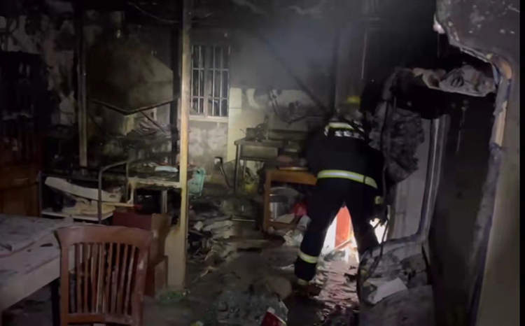 金山消防救援站的指战员到场后,发现明火已被扑灭,但火场温度有点高。随后,消防人员对冒烟区域进行冷却,以确保没有复燃的可能。
