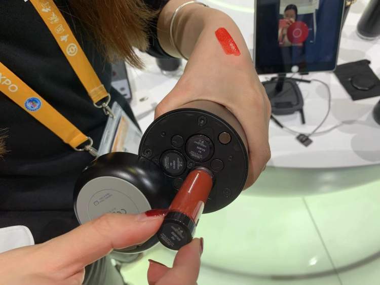 工作人员介绍说,使用这款口红机需要先连接专门的APP进行初步选色,一共有三种模式。