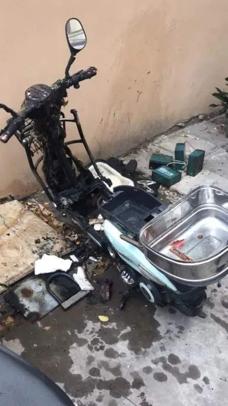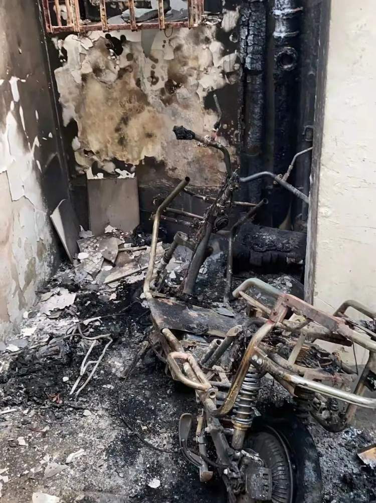 现场,车辆过火后完全损毁,仅剩一副框架;居民楼外立面局部被熏黑,数台空调外机受损。 经现场初步调查,起火原因系该栋居民楼内一租户(从事快递工作) 违规“飞线”为其电动自行车充电,电池短路所致。 根据《中华人民共和国消防法》第六十四条规定,过失引起火灾,尚不构成犯罪的,处十日以上十五日以下拘留,可以并处五百元以下罚款;情节较轻的,处警告或者五百元以下罚款。 目前,该肇事人员因过失引发火灾,被公安机关处以行政拘留10日,后续还将因修复房屋外墙面临赔偿。 2020年4月22日10时,普陀区宜川六村某居民楼前停放的一辆电动自行车发生火灾。经查该火灾系车主飞线充电过程中,因电动自行车充电器故障引发。依据《消防法》第六十四条之规定,对事故责任人处行政拘留十日。 2020年4月15日晚,普陀区消防救援支队联合各公安派出所成立专项检查组,开展电动自行车和消防通道集中整治行动。 在检查中发现甘泉地区某小区居民将电动自行车车违规推入楼道停放,责令其立即整改遭拒后,依据《消防法》第六十条之规定对其处以500元的处罚。