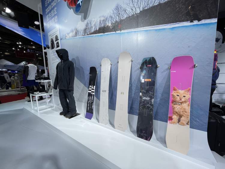 在进博现场亮相的五块雪板包括专业竞技类专用、公园大跳台专用、U型槽专用以及大众娱乐款。