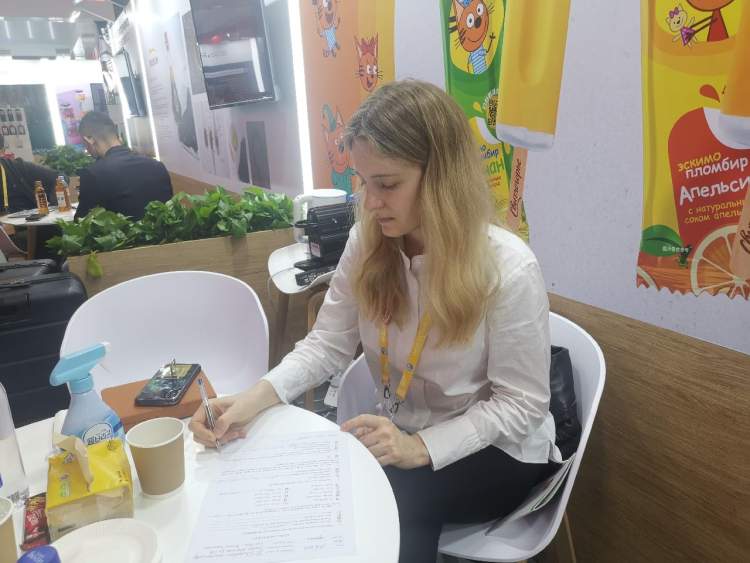 在“四叶草”的食品展区里,一个俄罗斯品牌的冰淇淋展柜前站着一位金发碧眼、高鼻梁的俄罗斯美女,她正在准备食品试吃,同时向来往的参展观众介绍这款俄罗斯当地“国民级”的冰淇淋,而她嘴里说着的是一口标准的普通话。