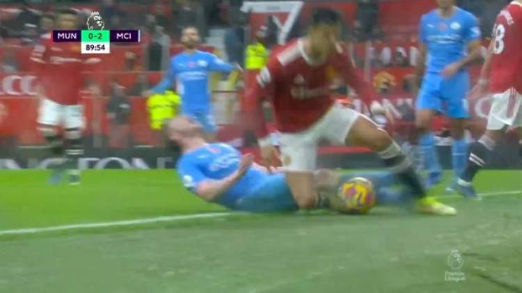 在飞铲德布劳内之前,比利时巨星已经被绊倒,并且皮球已经滑出了边线,但C罗依然高速飞铲,看来情绪已经失控。