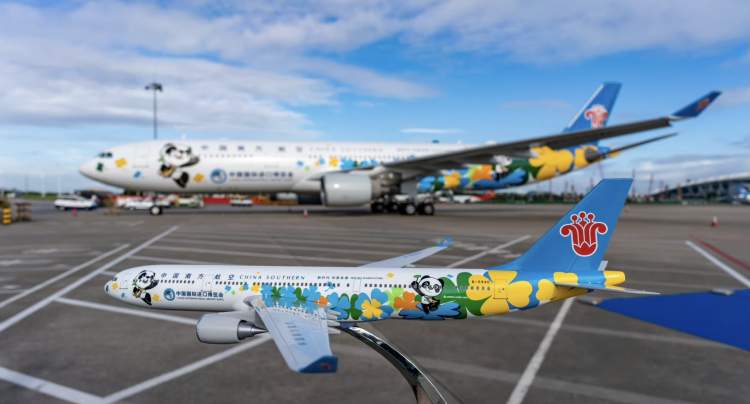 南航“进博号”彩绘飞机由南航与中国国际进口博览局、国家会展中心(上海)有限责任公司合作推出,选用了南航旗下的国际远程宽体客机空客A330-300型飞机,采用整机喷漆技术完成喷涂。彩绘设计重点凸显了进博会特色,选取吉祥物熊猫“进宝”及其手中所持幸运四叶草为主要元素,象征幸福与幸运,寓意着中国给世界各国人民的美好祝福。