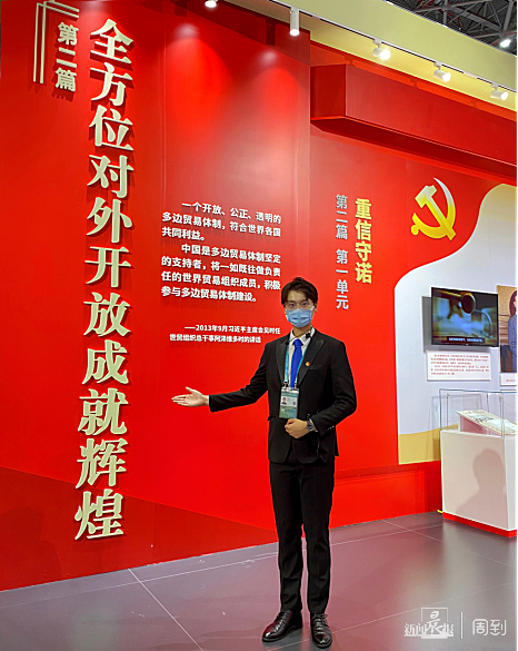 这是上经贸大学生连续四年以“小叶子”身份参与进博会志愿服务以来,首次以讲解员身份服务进博会。